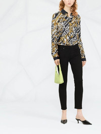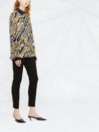 baroque graffiti-print shirt Graffiti-style branding is paired with Versace's signature baroque pattern on this long-sleeved shirt from Versace Jeans Couture, creating a striking graphic impact. Made in Italy Composition Viscose 100% SIZE & FIT Model measurements Height 5 ft 10 in(1.78 m) Bust/Chest 31.49 in(80 cm) Hips 35.43 in(90 cm) Waist 24.4 in(62 cm) FittingInformation This piece fits true to size. We recommend you get your regular size Cut for a loose fit Made with a mid-weight non-stretch fabric Washing instructions Dry Clean Only