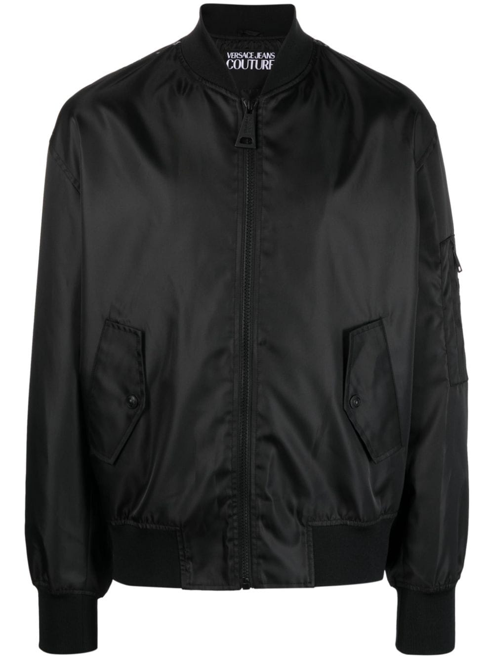 baroque-print bomber jacket Celebrating the essence of the Versace label, this bomber jacket is decorated with a baroque pattern at the back – inspired by the brand's signature Barocco motif, it appears here in black and white with the logo printed in the middle. The design is finished with the classic baseball collar and a zip-fastening pocket at the sleeve. Highlights - Black/white - Satin finish - Baroque-pattern print - Logo print to the rear - Ribbed trim - Baseball collar - Front zip fastening - Branded zip puller - Drop shoulder - Long sleeves - Sleeve zip pocket - Two side flap pockets - Straight hem Imported Composition Outer: Polyester 100% Lining: Polyester 100% SIZE & FIT Model measurements Height 6 ft 1 in(1.86 m) Bust/Chest 37.4 in(95 cm) Hips 36.22 in(92 cm) Waist 29.52 in(75 cm) FittingInformation Designed for a relaxed fit, this piece allows for comfort and movement when worn The ribbed hem offers a close, comfortable fit Made from a midweight non-stretch fabric This piece fits true to size – take your usual size Washing instructions Machine Wash