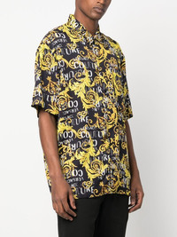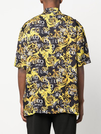 baroque-print short-sleeve shirt Versace Jeans Couture offers a lesson in maximalism with this shirt. The short-sleeve piece is detailed with a swirling baroque print for a lively finish. Imported Composition Viscose 100% SIZE & FIT Model measurements Height 6 ft 2 in(1.88 m) Bust/Chest 35.03 in(89 cm) Hips 35.82 in(91 cm) Waist 27.95 in(71 cm) Washing instructions Dry Clean Only