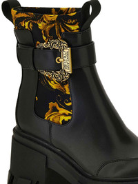 buckle-detail platform boots Highlights - Black - Baroque print - Leather upper - Chunky platform sole - Buckle fastening - Pull-on tab Imported Composition Outer: Fabric 100% Sole: Rubber 100% Lining: Calf Leather 100%, Fabric 100%