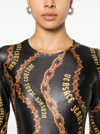Chain Couture bodysuit Highlights - Black - Gold-tone - Chain couture print - Crew neck - Long sleeves - Unlined - Press-stud fastening - Just a reminder that this piece must be tried on over your own garments. Made in Italy Composition Polyester 80%, Spandex/Elastane 20% SIZE & FIT Model measurements Height 5 ft 9 in(1.76 m) Bust/Chest 31.88 in(81 cm) Hips 35.43 in(90 cm) Waist 24.8 in(63 cm) FittingInformation Designed for a close fit throughout Made from a lightweight stretch fabric, this piece offers elasticity and flexibility when worn This piece fits true to size – take your usual size