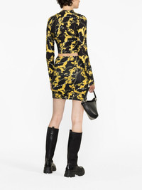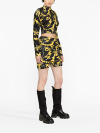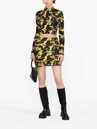 Chain Couture-print cropped jumper This ribbed-knit Versace Jeans Couture top is enlivened with the iconic Chain Couture print depicting swirling Baroque leaves, logo lettering and snaking jewellery chains. Its demure mock neck and long sleeves are balanced with a cropped hem. Highlights - Black/gold-tone - Cotton blend - Stretch-design - Baroque-pattern print - Chain-link print - All-over logo print - Logo lettering - Crew neck - Long sleeves - Ribbed trim - Straight hem - Cropped Imported Composition Cotton 62%, Polyamide 35%, Spandex/Elastane 3% SIZE & FIT Model measurements Height 5 ft 10 in(1.78 m) Bust/Chest 30.7 in(78 cm) Hips 34.64 in(88 cm) Waist 23.22 in(59 cm) Measurement SLEEVE LENGTH 24.8 in(63 cm) LENGTH 14.56 in(37 cm) BUST 29.92 in(76 cm) FittingInformation Designed for a slim fit that sits just away from the body offering a close yet comfortable fit Cropped in length Made with a midweight knit, this piece offers some stretch This piece fits true to size – take your usual size Washing instructions Machine Wash