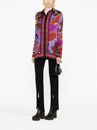 Chain Couture-print shirt This crepe Versace Jeans Couture shirt features the diffusion line’s Chain Couture print comprising two brand signatures – Barocco leaves and jewellery logo chains – against a richly coloured background. Highlights - Multicolour - Crepe texture - All-over logo print - Chain-link print - Classic collar - Front button fastening - Concealed front fastening - Long sleeves - Straight hem Imported Composition Viscose 100% SIZE & FIT Model measurements Height 5 ft 10 in(1.79 m) Bust/Chest 31.49 in(80 cm) Hips 35.03 in(89 cm) Waist 23.62 in(60 cm)