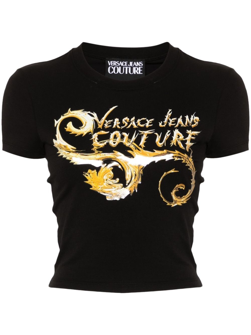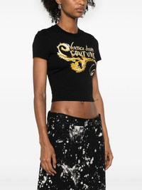 Chromo Couture cropped T-shirt Highlights - Black - Cotton blend - Stretch-jersey - Ribbed crew neck - Short sleeves - Chromo couture print to the front - Cropped - Straight hem Imported Composition Cotton 98%, Elastane 2% SIZE & FIT Model measurements Height 5 ft 11 in(1.8 m) Bust/Chest 31.49 in(80 cm) Hips 35.82 in(91 cm) Waist 24.8 in(63 cm) Measurement SLEEVE LENGTH 5.51 in(14 cm) LENGTH 16.14 in(41 cm) BUST 27.55 in(70 cm) Shoulder Width 13.77 in(35 cm) FittingInformation Designed for a close fit throughout Made from a lightweight stretch fabric, this piece offers elasticity and flexibility when worn This piece fits true to size – take your usual size