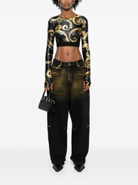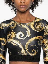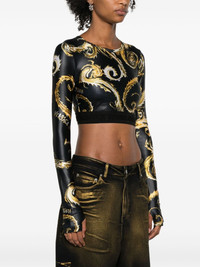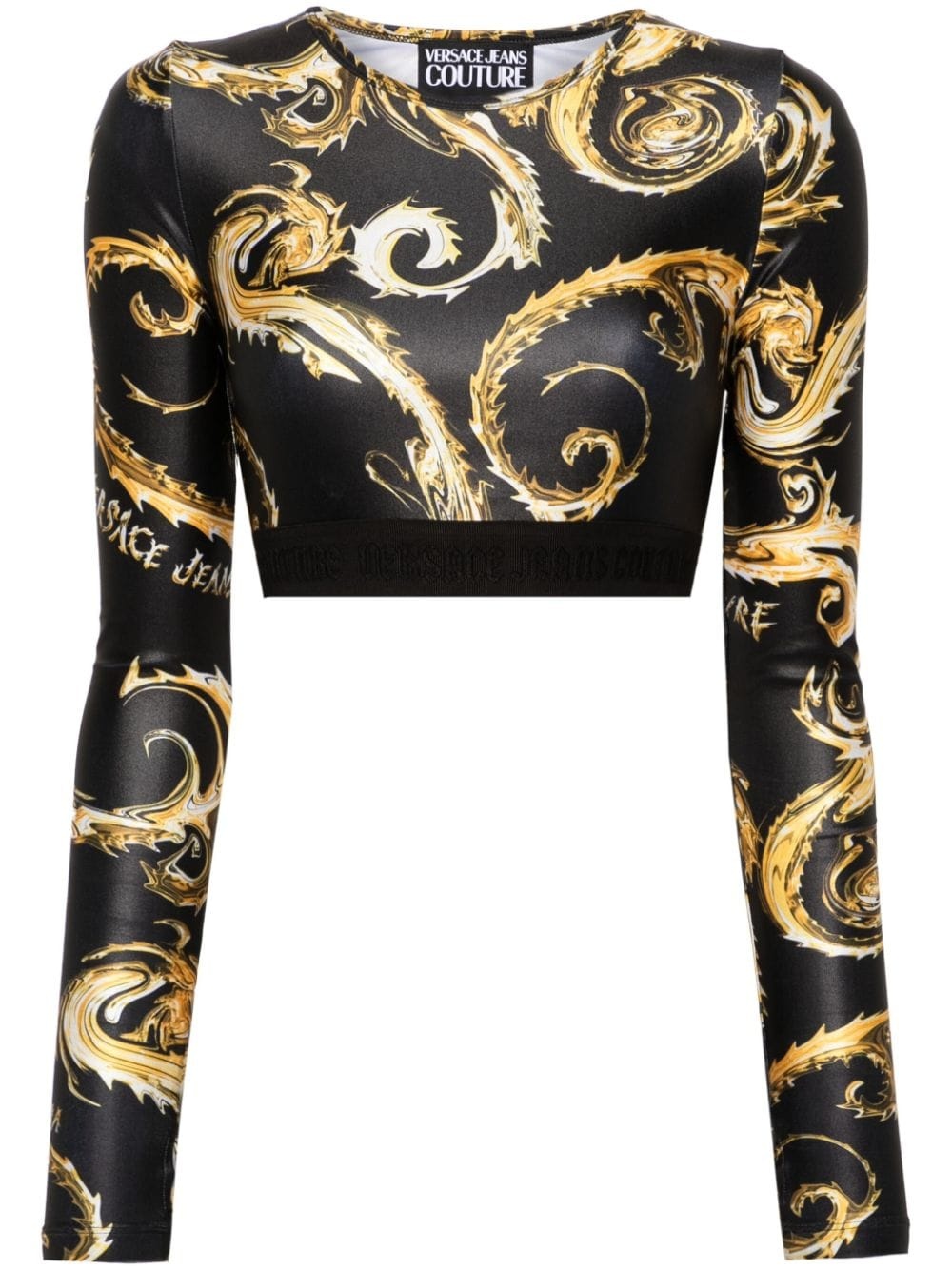 Chromo Couture-print cropped top Highlights - Black/yellow - Stretch-design - Technical jersey - All-over chromo couture print - Round neck - Long sleeves - Cropped - Elasticated logo waistband Imported Composition Polyester 80%, Elastane 20% SIZE & FIT Model measurements Height 5 ft 11 in(1.8 m) Bust/Chest 31.49 in(80 cm) Hips 35.82 in(91 cm) Waist 24.8 in(63 cm) FittingInformation Designed for a close fit throughout The elasticated waist allows for a comfortable fit Made from a lightweight stretch fabric, this piece offers elasticity and flexibility when worn This piece fits true to size – take your usual size