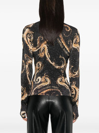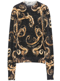 Chromo Couture-print sweater Highlights - Black/gold-tone - Fine knit - All-over chromo couture pattern - Lurex detailing - Mock neck - Long sleeves - Ribbed trim Imported Composition Viscose 81%, Polyamide 11%, Metallic Fibre 6%, Elastane 2% SIZE & FIT Model measurements Height 5 ft 11 in(1.8 m) Bust/Chest 33.07 in(84 cm) Hips 37.4 in(95 cm) Waist 25.19 in(64 cm) FittingInformation Designed for a close fit throughout Made with a midweight knit, this piece offers some stretch
