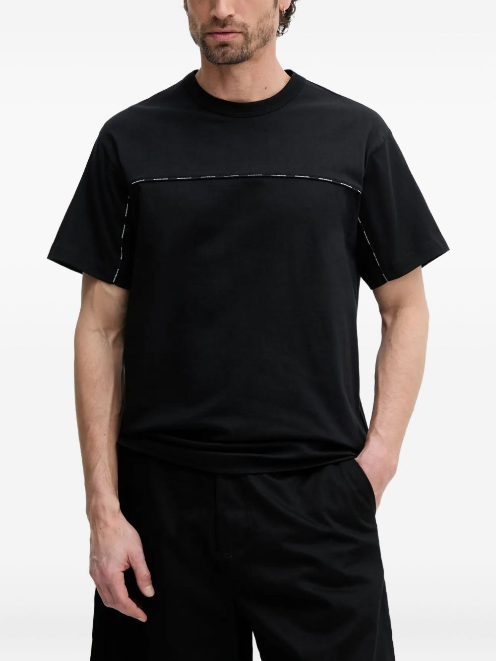 contrast-stitch cotton t-shirt Highlights - Black - Short sleeves - Crew neck - Cotton material - Horizontal contrast stitching Imported Composition Cotton 100% Washing instructions Read Manufacturer Guidelines