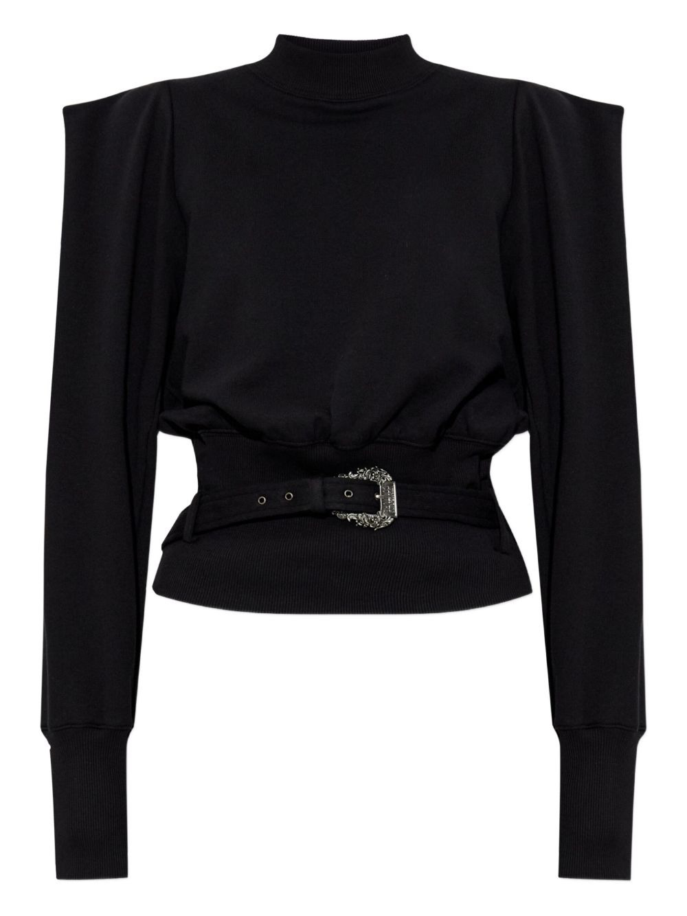 cotton belted sweatshirt Highlights - Black - Padded shoulders - High neck - Adjustable belt - Long sleeves Imported Composition Cotton 100% Washing instructions Read Manufacturer Guidelines
