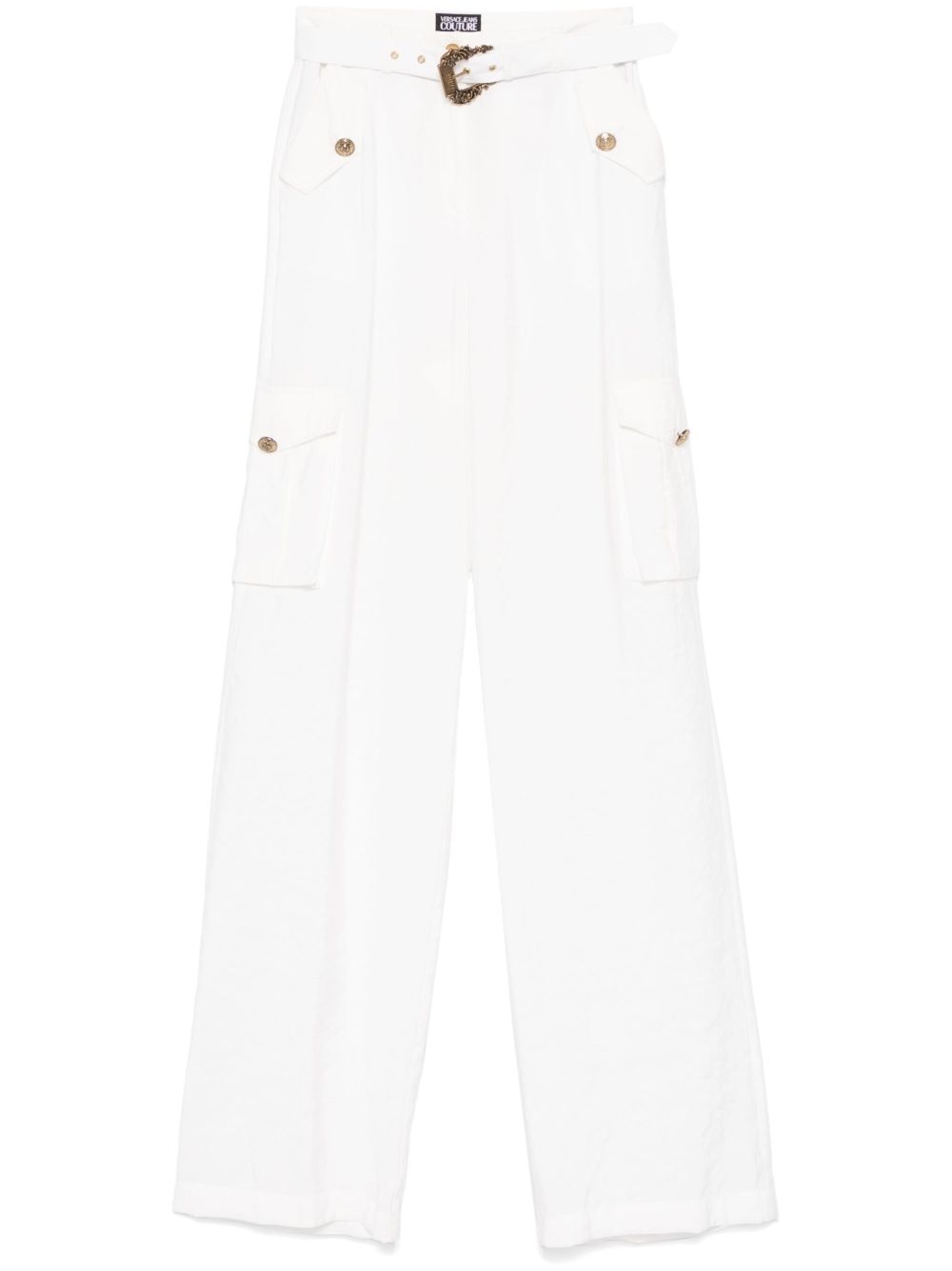 crinkled-finish cargo pants Highlights - White - Concealed fly and button fastening - Belted waist - Two diagonal pockets to the sides - Two rear flap pockets Made in Italy Composition Lining: Acetate 52%, Polyester 48% Outer: Modal 82%, Polyester 18% SIZE & FIT Model measurements Height 5 ft 11 in(1.8 m) Bust/Chest 32.67 in(83 cm) Hips 36.22 in(92 cm) Waist 24.4 in(62 cm) FittingInformation Designed with a wide-leg cut, these trousers allow for a close fit at the waist and offer a loose and roomy fit over the leg The belt offers adjustability for fitted preferences Made from a lightweight non-stretch fabric