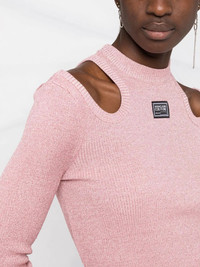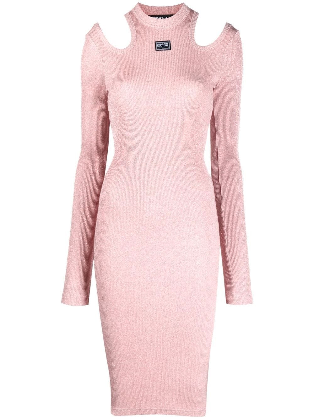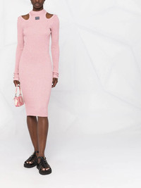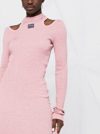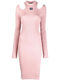 cut-out knitted dress Versace Jeans Couture updates the classic midi dress silhouette for the new season. Crafted from a soft knit, this design features a figure-hugging silhouette that is updated with two cut-out cold shoulders for a final touch. Imported Composition Viscose 80%, Polyester 11%, Polyamide 9% SIZE & FIT Model measurements Height 5 ft 10 in(1.77 m) Bust/Chest 32.28 in(82 cm) Hips 35.03 in(89 cm) Waist 25.19 in(64 cm) FittingInformation This piece fits true to size. We recommend you get your regular size Cut for a slim fit Made with a mid-weight fabric Washing instructions Dry Clean Only