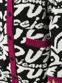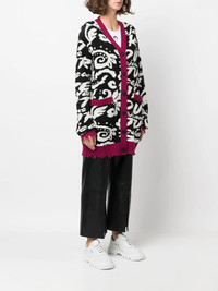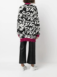 distressed-effect cardi-coat black/white/dark pink wool-blend distressed effect intarsia-knit logo V-neck front button fastening long sleeves ribbed trim two front patch pockets Made in Italy Composition Acrylic 50%, Wool 50% SIZE & FIT Model measurements Height 5 ft 9 in(1.76 m) Bust/Chest 33.07 in(84 cm) Hips 34.64 in(88 cm) Waist 25.59 in(65 cm) FittingInformation This piece fits true to size. We recommend you get your regular size Cut for a loose fit Made with a mid-weight fabric Washing instructions Hand Wash