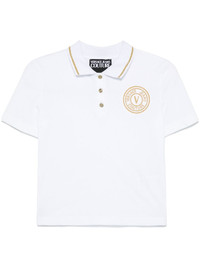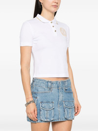 embroidered-logo polo top Highlights - White - Short front button fastening - Stripe detailing Imported Composition Cotton 100% SIZE & FIT Model measurements Height 5 ft 11 in(1.8 m) Bust/Chest 33.07 in(84 cm) Hips 37.4 in(95 cm) Waist 25.19 in(64 cm) FittingInformation Designed for a slim fit that sits just away from the body offering a close yet comfortable fit Made from a midweight non-stretch fabric, this piece offers minimal elasticity when worn