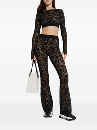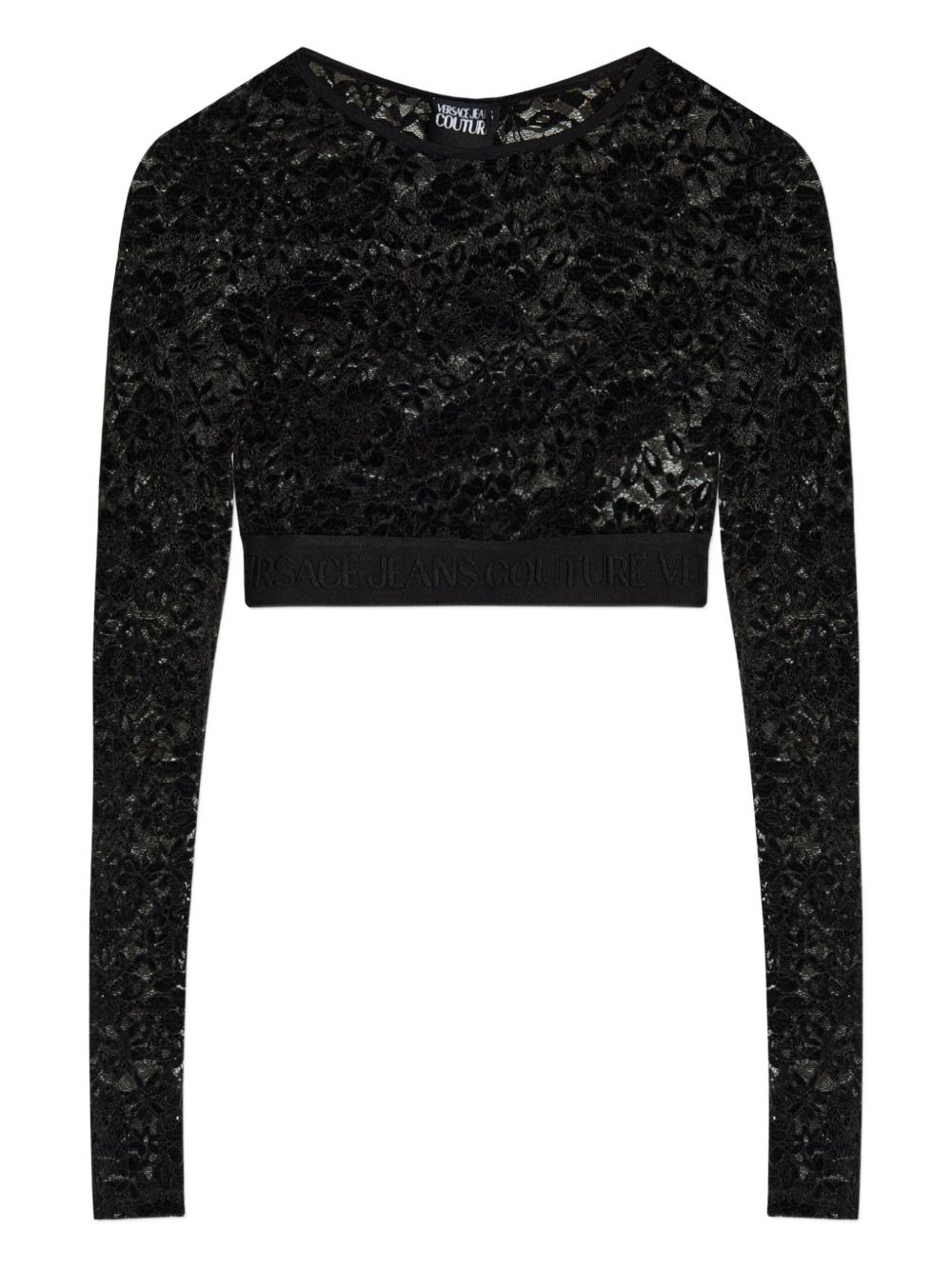 floral-lace long-sleeve top Highlights - Black - Lace detail - Long sleeves - Round neck - Elasticated hem - Thumb holes Imported Composition Polyester 95%, Elastane 5% Washing instructions Read Manufacturer Guidelines