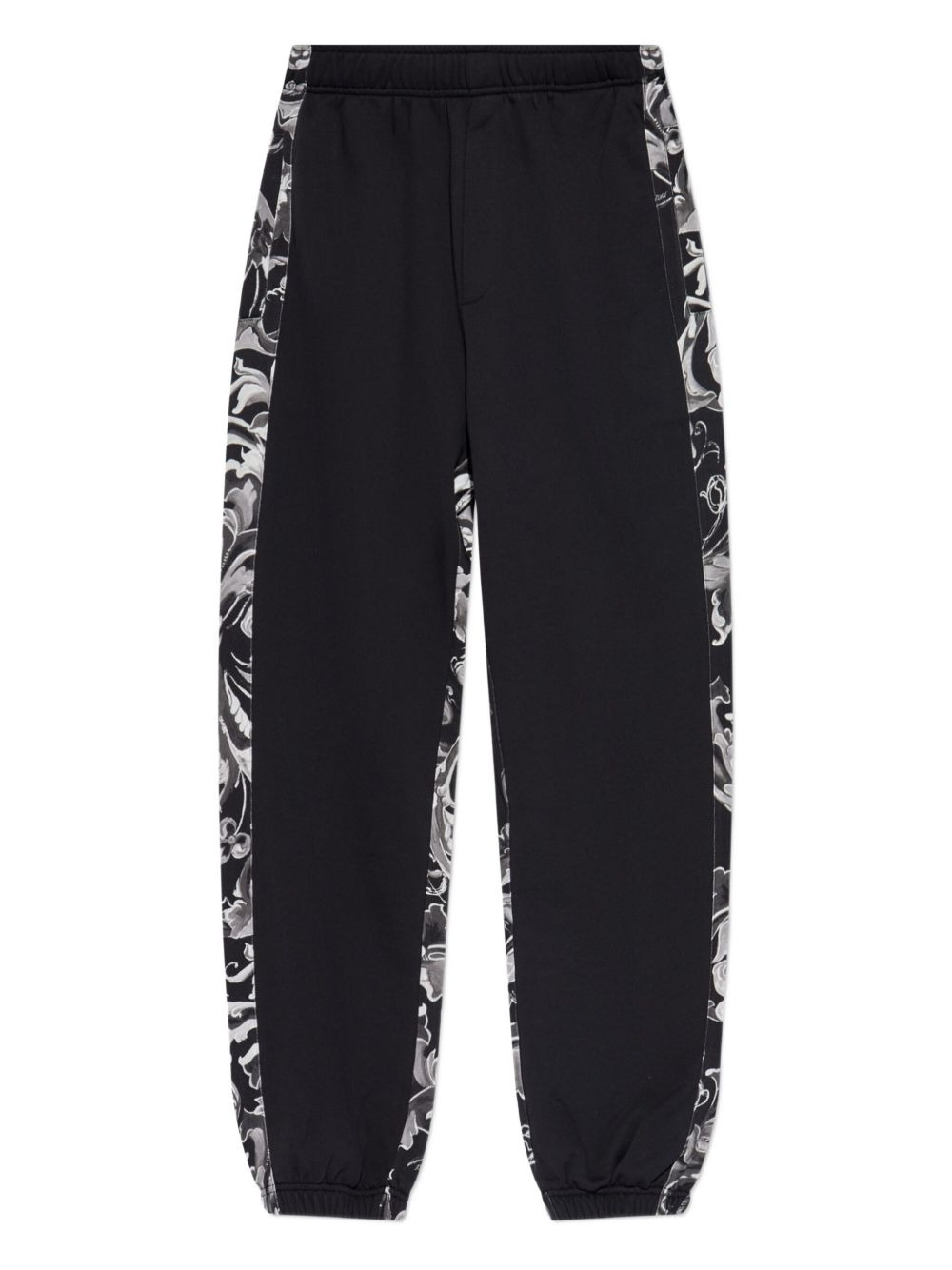 floral-panelled trousers Highlights - Black - Side panels - Floral print - Elasticated waistband - Cuffed hems - Side pockets Imported Composition Cotton 100% Washing instructions Read Manufacturer Guidelines