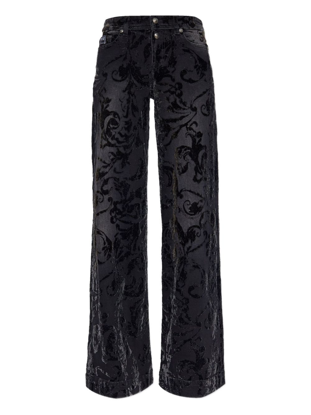 floral-pattern flared jeans Highlights - Black - Floral pattern - Back pockets - Belt loops - Button fastening Imported Composition Cotton 98%, Elastane 2% Washing instructions Read Manufacturer Guidelines