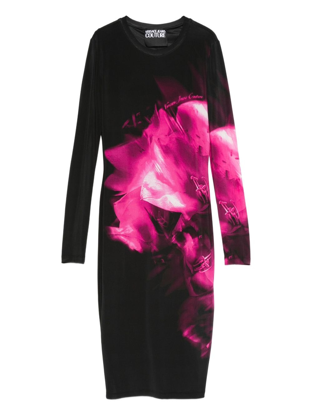 floral-print long-sleeve midi dress Highlights - Black - Magenta floral print - Long sleeves - Round neck - Midi length Imported Composition Fabric 100% SIZE & FIT Model measurements Height 5 ft 9 in(1.75 m) Bust/Chest 34.64 in(88 cm) Hips 36.61 in(93 cm) Waist 26.37 in(67 cm) Washing instructions Read Manufacturer Guidelines