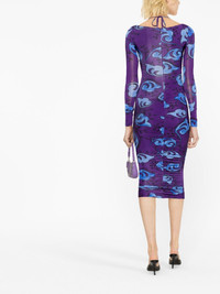 floral-print midi dress Versace Jeans Couture follows in the steps of mainline collections with its bold prints and daring silhouettes. As is the case with this SS23 midi dress, with its bright purple and blue floral print and slinky, cut-out silhouette. Highlights - Purple/blue - Stretch-design - All-over floral print - Gathered detailing - Cut-out detailing - Halterneck tie fastening - Long sleeves - Mid-calf length - Concealed rear zip fastening - Straight hem Made in Italy Composition Outer: Viscose 96%, Spandex/Elastane 4% Lining: Polyamide 100% SIZE & FIT Model measurements Height 5 ft 10 in(1.79 m) Bust/Chest 31.49 in(80 cm) Hips 35.03 in(89 cm) Waist 23.62 in(60 cm) FittingInformation Designed for a close fit throughout The adjustable drawstring means that you can adjust this piece’s fit to suit your comfort and preference Made from a midweight stretch fabric, this piece offers elasticity and flexibility when worn This piece fits true to size – take your usual size Washing instructions Dry Clean Only