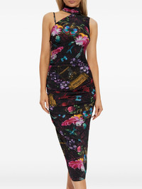 floral-print midi dress Highlights - Black - Floral print - Asymmetric neckline - Ruched bodice - Sleeveless - Midi length Made in Italy Composition Viscose 91%, Elastane 9% Washing instructions Read Manufacturer Guidelines