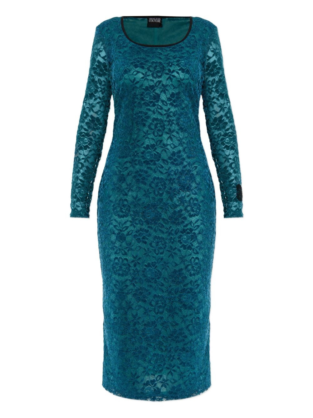 lace long-sleeve midi dress Highlights - Teal blue - Lace detail - Long sleeves - Round neck - Mid-length - Tonal stitching Imported Composition Polyester 95%, Spandex/Elastane 5% Washing instructions Read Manufacturer Guidelines