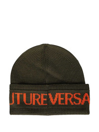 logo-embroidered beanie Highlights - Olive green - Ribbed knit - Logo embroidery - Fold-over brim Made in Italy Composition Acrylic 50%, Wool 50%