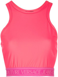 logo-jacquard jersey crop top Highlights - Coral pink - Stretch-jersey - Round neck - Sleeveless - Racerback - Logo underband - Cropped - Straight hem Made in Italy Composition Polyamide 80%, Elastane 20% SIZE & FIT Model measurements Height 5 ft 10 in(1.77 m) Bust/Chest 33.07 in(84 cm) Hips 37 in(94 cm) Waist 24.8 in(63 cm) FittingInformation Designed for a close fit throughout The elasticated waist allows for a comfortable fit Made from a midweight stretch fabric, this piece offers elasticity and flexibility when worn This piece fits true to size – take your usual size Washing instructions Machine Wash