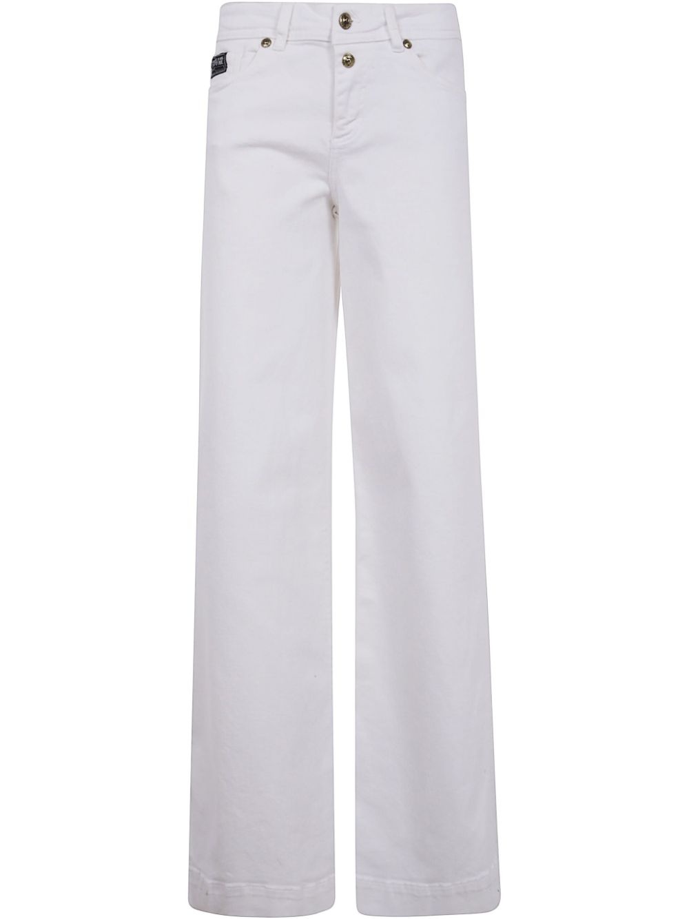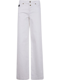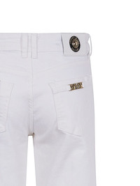 logo-lettering jeans Highlights - White - Concealed front fastening - Belt loops - Classic five pockets Imported Composition Cotton 98%, Elastane 2% Washing instructions Read Manufacturer Guidelines