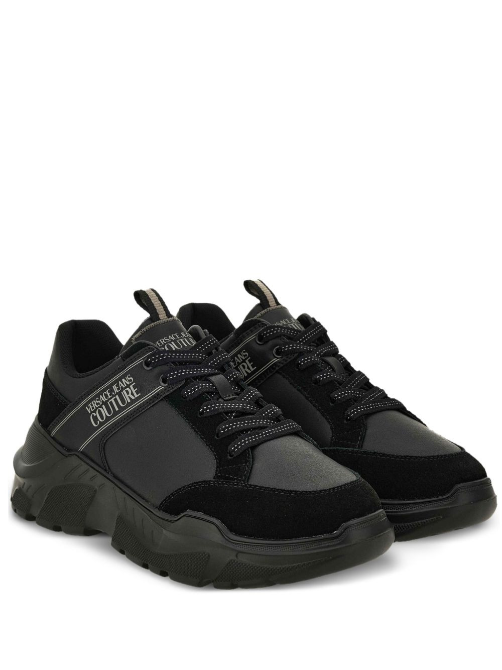 logo-patch chunky sneakers Highlights - Black - Leather upper - Suede panelling - Lace-up fastening - Chunky rubber sole - Logo detail Imported Composition Outer: Polyurethane 100% Lining: Fabric 100% Sole: Rubber 100%