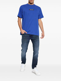 logo-patch jeans Highlights - Navy blue - Logo patch - Gold-tone hardware - Five pockets - Belt loops - Back pockets Imported Composition Cotton 100% Washing instructions Read Manufacturer Guidelines