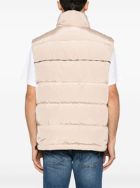 logo-patch quilted gilet Versace Jeans Couture leans into utilitarian style with this blush-beige gilet. It boasts a lustrous shell injected with insulating feather down and quilted, maximising warmth. Meanwhile, the funnel neck adds protection, and the zip fastening and two pockets act as further practical elements. Highlights - Blush beige - Feather down - Quilted - Logo patch to the front - Funnel neck - Front zip fastening - Sleeveless - Two front patch pockets - Straight hem Imported Composition Outer: Polyester 100% Lining: Polyester 100%, Feather Down 100% SIZE & FIT Model measurements Height 6 ft 1 in(1.86 m) Bust/Chest 37.4 in(95 cm) Hips 36.22 in(92 cm) Waist 29.52 in(75 cm) FittingInformation Designed to be unstructured, offering a loose fit throughout The internal drawstring at the hem allows for fitted preferences Made from a padded non-stretch fabric, giving it no natural elasticity This piece fits true to size – take your usual size