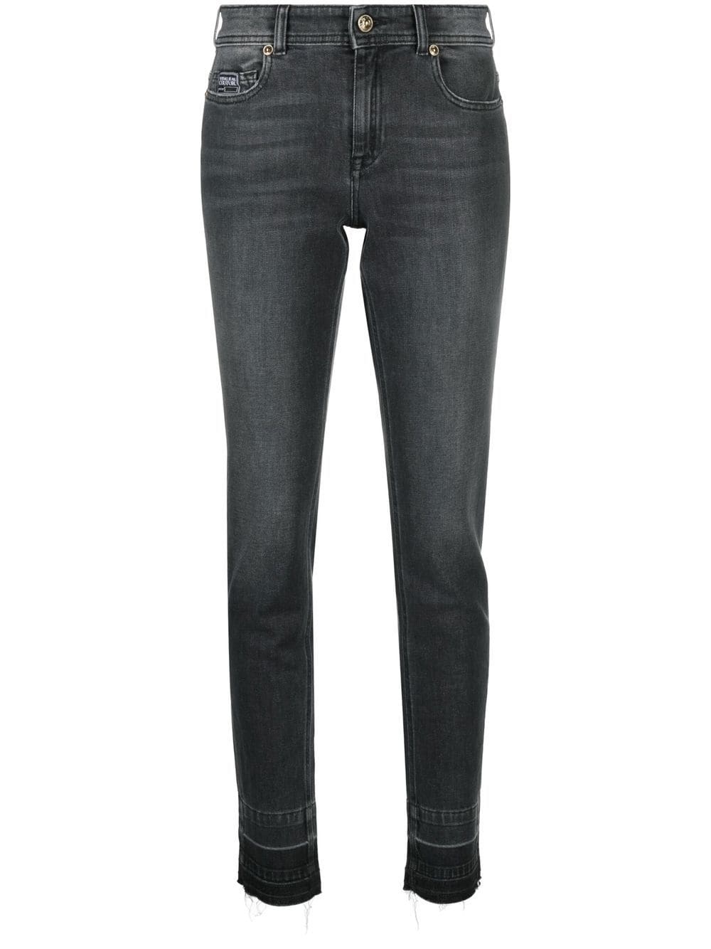 logo-patch skinny jeans Versace Jeans Couture showcases its laid-back style with these skinny jeans. Boasting a pared-back design, they are finished with a logo patch to the rear. Imported Composition Outer: Cotton 98%, Spandex/Elastane 2% Lining: Polyester 65%, Cotton 35% SIZE & FIT Model measurements Height 5 ft 10 in(1.79 m) Bust/Chest 31.49 in(80 cm) Hips 35.03 in(89 cm) Waist 23.62 in(60 cm) FittingInformation This piece fits true to size. We recommend you get your regular size Cut for a slim fit Made with a mid-weight stretch fabric Washing instructions Machine Wash