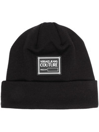 logo-patch wool-blend beanie Highlights - Black - Wool blend - Fine knit - Round crown - Logo patch to the front - Slip-on style - Turn-up hem Made in Italy Composition Acrylic 50%, Wool 50%