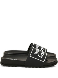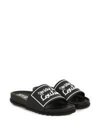 logo-plaque slides Highlights - Black - Rubber sole - Logo lettering - Rectangular plaque - Slip-on style Imported Composition Outer: Rubber 100% Sole: Rubber 100% Lining: Rubber 100%