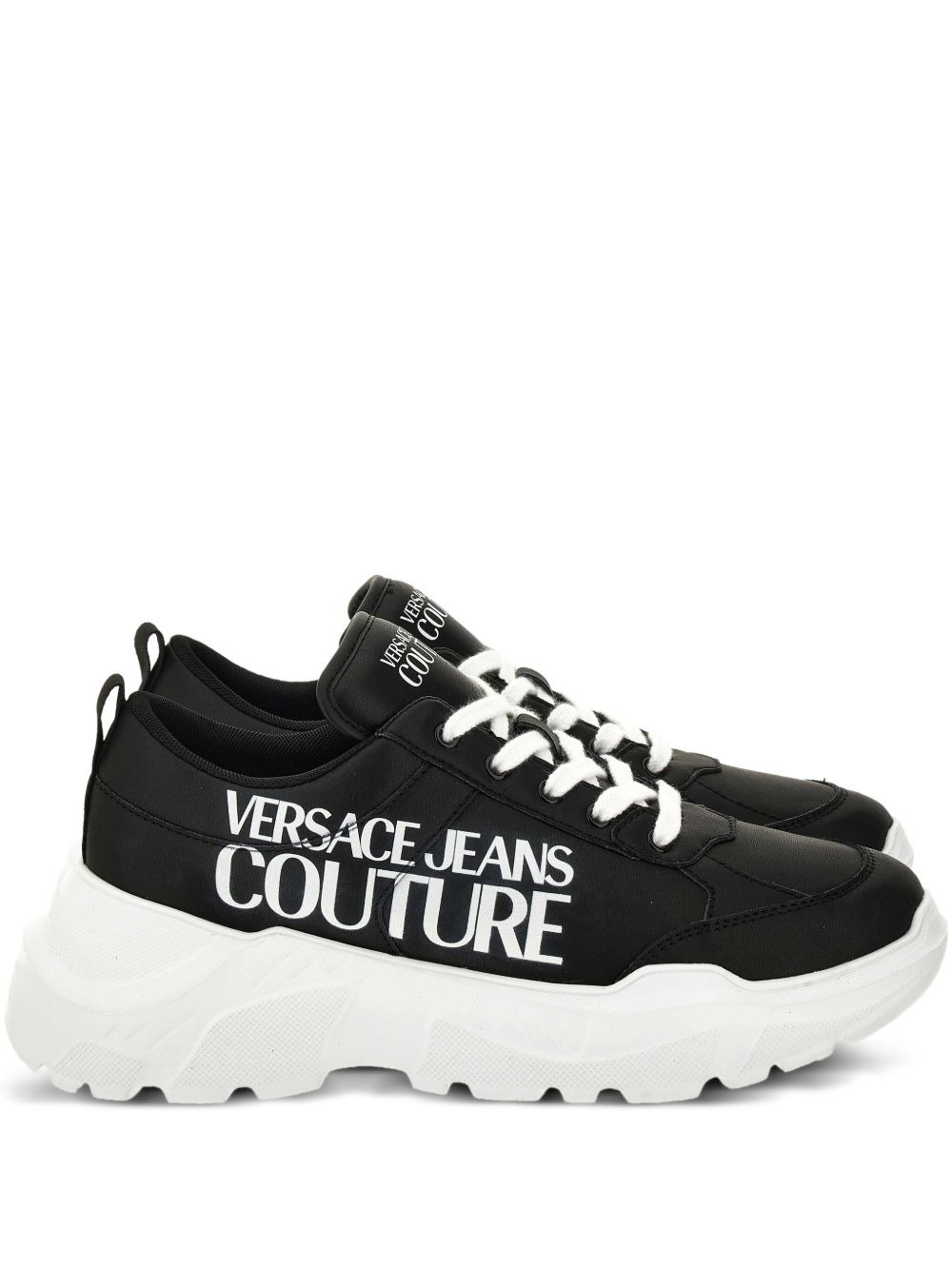 logo-print chunky trainers Highlights - Black - Leather-look finish - Lace-up fastening - Chunky rubber sole - Logo print - Low-top style Imported Composition Lining: Fabric 100% Sole: Rubber 100% Outer: Calf Leather 100%
