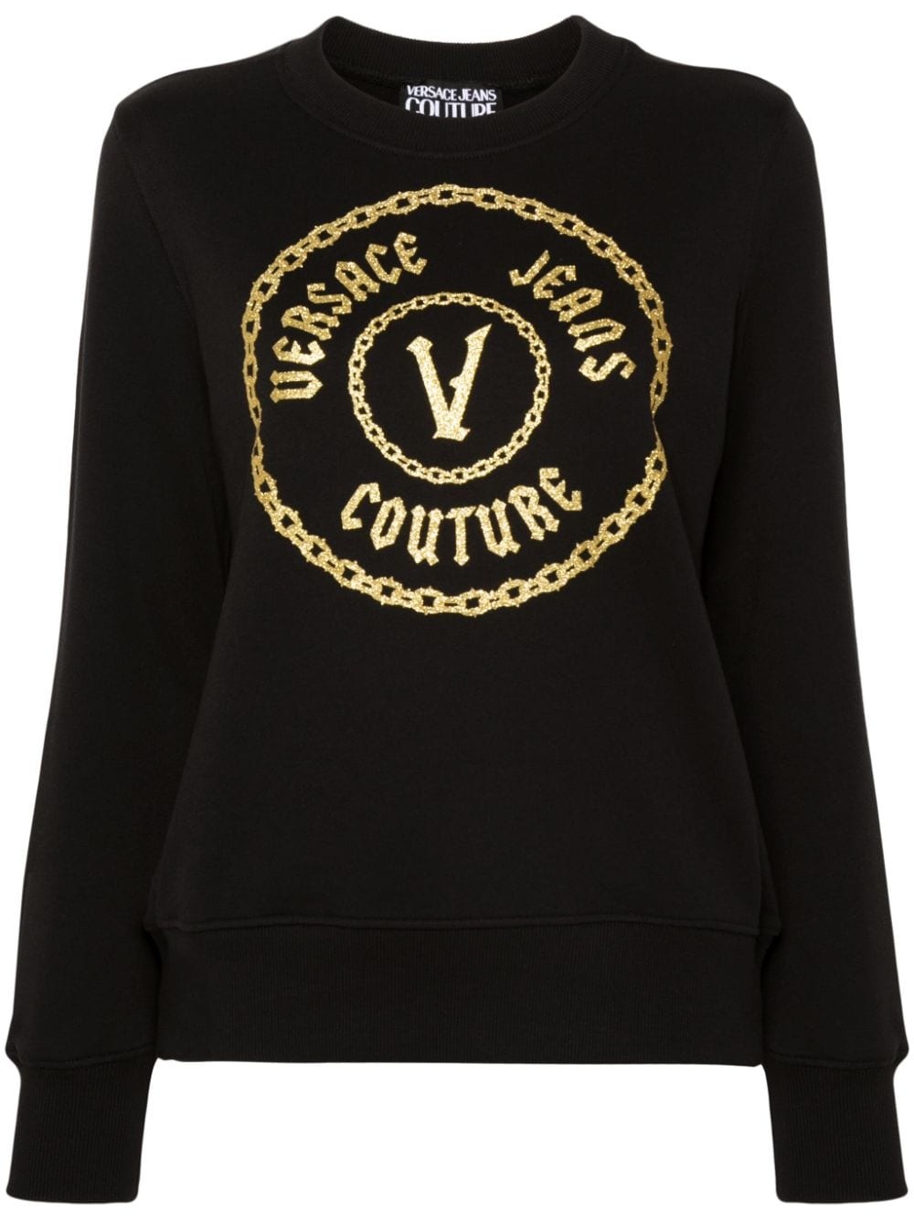 logo-print cotton sweatshirt Highlights - Black - Cotton - Jersey texture - Crew neck - Long sleeves - Ribbed cuffs and hem - Logo print at the chest with glitter detailing - Straight hem Imported Composition Cotton 100% SIZE & FIT Model measurements Height 5 ft 10 in(1.77 m) Bust/Chest 32.28 in(82 cm) Hips 35.03 in(89 cm) Waist 25.19 in(64 cm) FittingInformation Designed for a relaxed fit, this piece allows for comfort and movement when worn Made from a midweight non-stretch fabric, this piece offers minimal elasticity when worn This piece fits true to size – take your usual size
