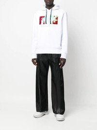 logo-print drawstring hoodie Highlights - White - Red - Cotton - Crew neck - Drawstring hood - Holographic logo print - Long sleeves - Ribbed cuffs - Ribbed hem Imported Composition Cotton 100% SIZE & FIT Model measurements Height 6 ft 2 in(1.87 m) Bust/Chest 36.41 in(92.5 cm) Hips 37 in(94 cm) Waist 29.52 in(75 cm) FittingInformation This piece fits true to size. We recommend you get your regular size Cut for a loose fit Made with a mid-weight stretch fabric