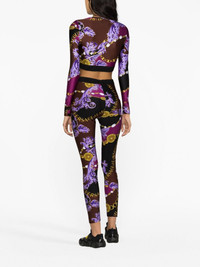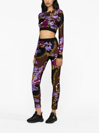 logo-print leggings Versace Jeans Couture brings its ornate patterns to athleisure; these multicolour leggings are printed with a flurry of purple Baroccoflage leaves intertwined with printed chain links strung with pearls and monikers. Highlights - Black/multicolour - All-over logo print - Chain-link print - Signature baroccoflage print - Stretch-design - Logo waistband - Pull-on style - Bodycon design Imported Composition Polyamide 80%, Elastane 20% SIZE & FIT Model measurements Height 5 ft 10 in(1.78 m) Bust/Chest 31.49 in(80 cm) Hips 35.03 in(89 cm) Waist 23.62 in(60 cm) FittingInformation Designed for a close fit throughout The elasticated waist allows for a comfortable fit Made from a midweight stretch fabric, this piece offers elasticity and flexibility when worn This piece fits true to size – take your usual size