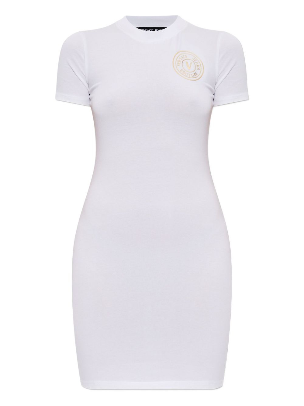 logo-print mini dress Highlights - White - Round neck - Short sleeves - Logo print - Above-the-knee length Imported Composition Cotton 95%, Elastane 5% Washing instructions Machine Wash