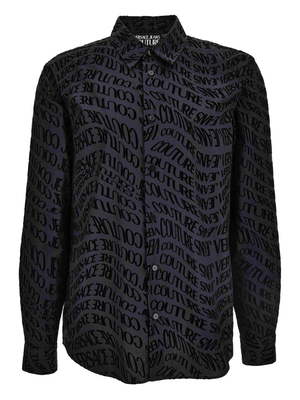 logo-print shirt Highlights - Black - Long sleeves - Button fastening - All-over logo print - Classic collar - Velvet detailing Imported Composition Fabric 100% Washing instructions Read Manufacturer Guidelines