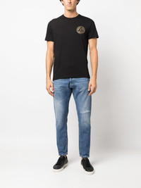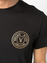 logo-print short-sleeved T-shirt Highlights - Black/gold-tone - Cotton - Jersey texture - Logo print at the chest - Crew neck - Short sleeves - Straight hem Imported Composition Cotton 100% SIZE & FIT Model measurements Height 6 ft 2 in(1.89 m) Bust/Chest 37.79 in(96 cm) Hips 37 in(94 cm) Waist 29.92 in(76 cm) FittingInformation Designed for a relaxed fit, this piece allows for comfort and movement when worn Made from a midweight non-stretch fabric, this piece offers minimal elasticity when worn This piece fits true to size – take your usual size Washing instructions Machine Wash