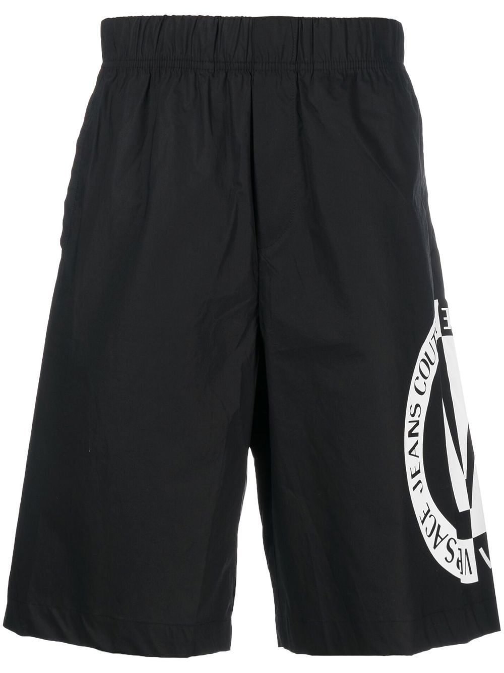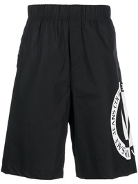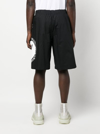 logo-print shorts black/white cotton logo print to the side elasticated waistband knee-length Imported Composition Cotton 100% SIZE & FIT Model measurements Height 6 ft 0 in(1.84 m) Bust/Chest 35.82 in(91 cm) Hips 37 in(94 cm) Waist 28.34 in(72 cm) FittingInformation This piece fits true to size. We recommend you get your regular size Designed for a slim fit at the waist and loose over the leg Made with a mid-weight non-stretch fabric Washing instructions Hand Wash