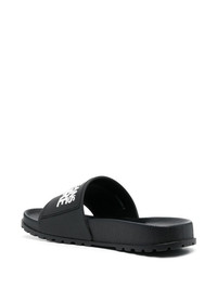 logo-print slides black/white logo print to the front embossed logo to the rear open toe flat rubber sole Imported Composition Outer: Rubber 100% Sole: Rubber 100% Lining: Rubber 100% SIZE & FIT Measurement HEEL 0.78 in(2 cm) Sole height 0.59 in(1.5 cm)