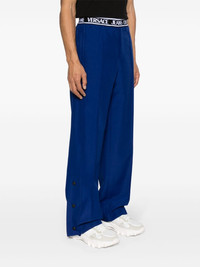 logo-waistband wide-leg trousers Highlights - Royal blue/black/white - Cotton - Mid-rise - Wide leg - Pleat detailing - Elasticated logo waistband - Short front zip fastening - Two side welt pockets - Two rear welt pockets - Press-stud fastening cuffs - Straight hem Made in Italy Composition Lining: Cotton 100% Outer: Polyester 100% SIZE & FIT Model measurements Height 6 ft 2 in(1.87 m) Bust/Chest 38.18 in(97 cm) Hips 36.61 in(93 cm) Waist 29.13 in(74 cm) FittingInformation Designed for a relaxed straight leg, allowing a comfortable and loose fit over the leg The elasticated waist allows for a comfortable fit Made from a midweight non-stretch fabric This piece fits true to size – take your usual size