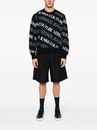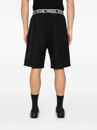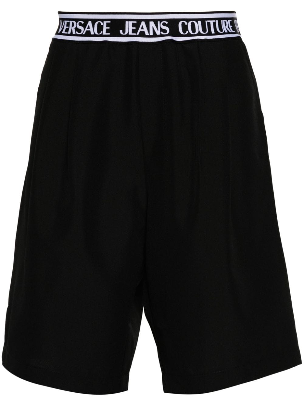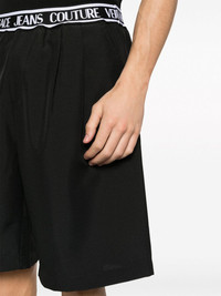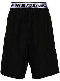 logo-waistband shorts These Versace Jeans Couture shorts are cut from cotton and adorned with an elasticated brand waistband, echoing the brand's modern influences. Highlights - Black - Technical canvas - Lightweight - Two side slash pockets - Pleat detailing to the front - Faux fly detail - Rear patch pocket - Knee-length with wide leg - Elasticated logo waistband Made in United Kingdom Composition Lining: Cotton 100% Outer: Polyester 100% SIZE & FIT Model measurements Height 6 ft 2 in(1.89 m) Bust/Chest 37.4 in(95 cm) Hips 35.03 in(89 cm) Waist 27.95 in(71 cm) FittingInformation Designed with a wide leg, offering a loose and roomy fit The elasticated waist allows for a comfortable fit Made from a midweight non-stretch fabric This piece fits true to size – take your usual size Washing instructions Machine Wash