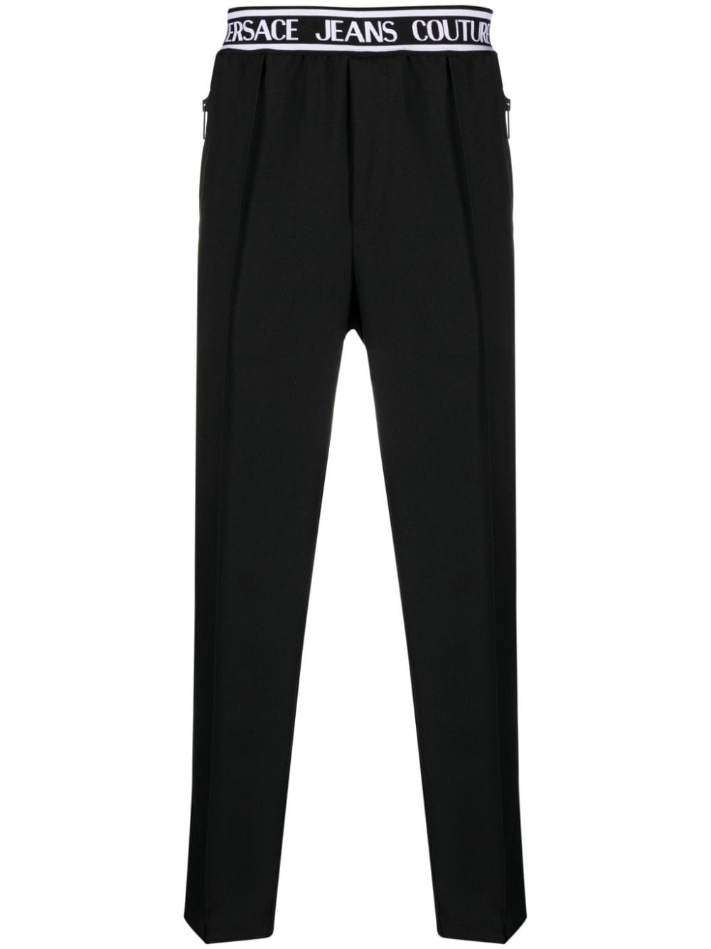 logo-waistband slim-cut trousers Highlights - Black - Cotton - Pressed crease - Logo waistband - Slim cut - Mid-rise - Elasticated waistband - Two side zip-fastening pockets - Rear zip-fastening pocket Made in Italy Composition Outer: Polyester 70%, Viscose 30% Lining: Cotton 100% SIZE & FIT Model measurements Height 6 ft 1 in(1.86 m) Bust/Chest 37.4 in(95 cm) Hips 36.22 in(92 cm) Waist 29.52 in(75 cm) FittingInformation Designed for a tapered leg, offering a loose unrestricted fit over the leg with a closer fit towards the ankle The elasticated waist allows for a comfortable fit Made from a midweight non-stretch fabric This piece fits true to size – take your usual size Washing instructions Machine Wash