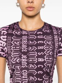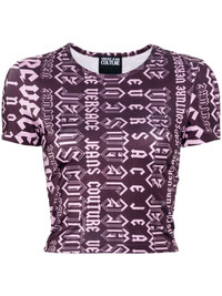 Logomania cropped T-shirt Highlights - Aubergine purple/rose pink - Stretch-design - Logomania print - Crew neck - Short sleeves - Straight hem - Unlined Made in Italy Composition Polyester 80%, Spandex/Elastane 20% SIZE & FIT Model measurements Height 5 ft 9 in(1.76 m) Bust/Chest 31.88 in(81 cm) Hips 35.43 in(90 cm) Waist 24.8 in(63 cm) FittingInformation Designed for a close fit throughout Made from a lightweight stretch fabric, this piece offers elasticity and flexibility when worn This piece fits true to size – take your usual size