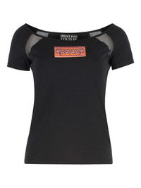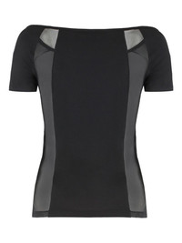 mesh-panel cotton t-shirt Highlights - Black - Short sleeves - Mesh inserts - Boat neck - Logo patch - Cotton fabrication Imported Composition Cotton 94%, Spandex/Elastane 6% Washing instructions Read Manufacturer Guidelines