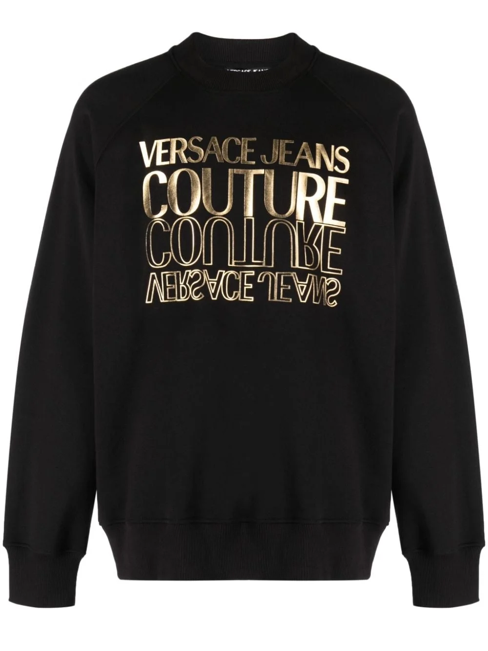 metallic logo-print cotton sweatshirt Highlights - Black/gold-tone - Cotton - Jersey texture - Logo print to the front - Crew neck - Long draped sleeves - Ribbed cuffs and hem - French terry lining - Straight hem Imported Composition Cotton 100% SIZE & FIT Model measurements Height 6 ft 2 in(1.87 m) Bust/Chest 33.46 in(85 cm) Hips 36.22 in(92 cm) Waist 29.52 in(75 cm) Measurement CHEST 50.39 in(128 cm) LENGTH 27.55 in(70 cm) FittingInformation Designed for a relaxed fit, this piece allows for comfort and movement when worn Made from a midweight non-stretch fabric, this piece offers minimal elasticity when worn This piece fits true to size – take your usual size Washing instructions Machine Wash