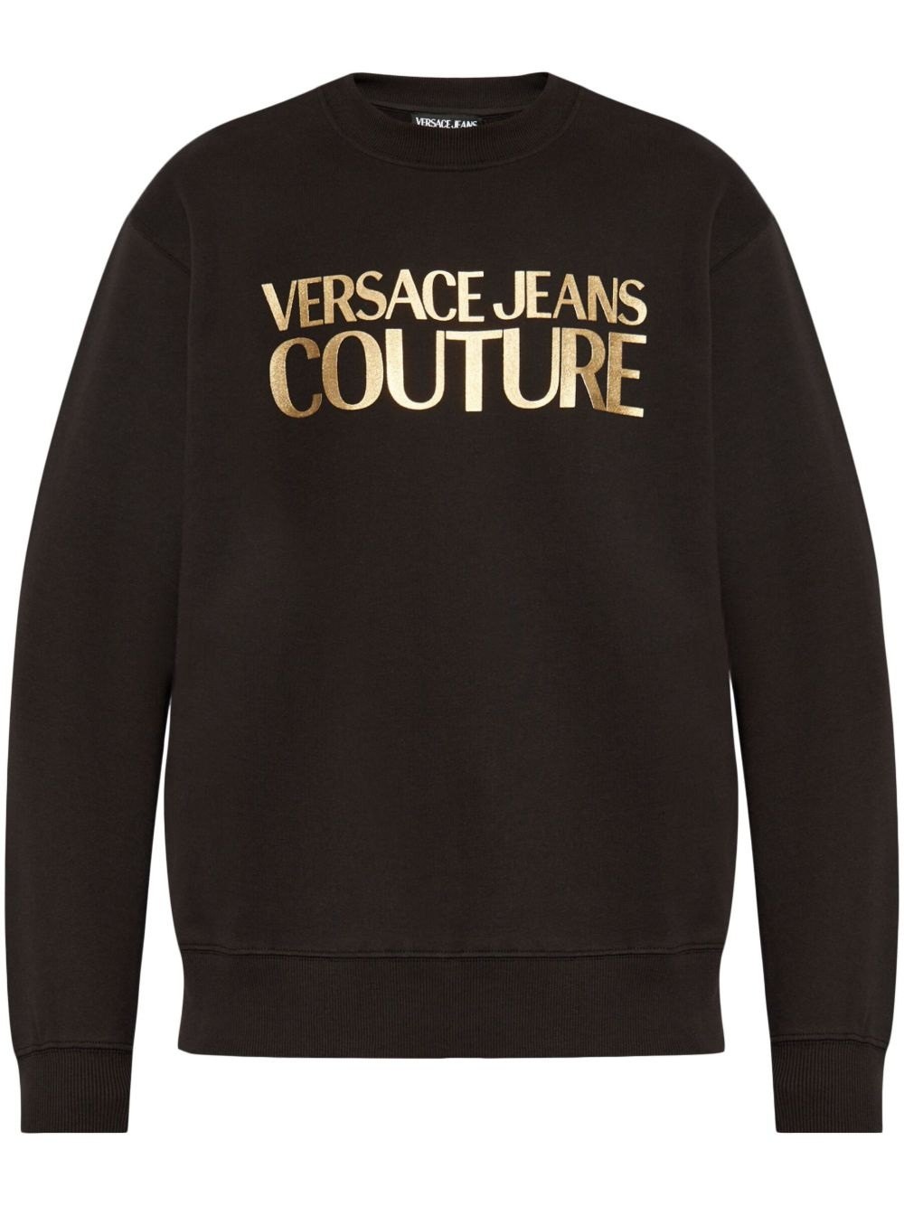 metallic logo-print sweatshirt Highlights - Black - Crew neck - Long sleeves - Ribbed cuffs and hem Imported Composition Cotton 100%
