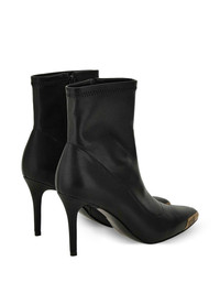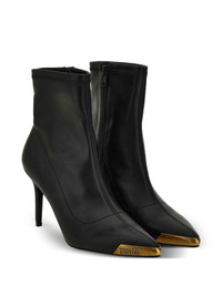 metallic-toe slip-on boots Highlights - Black - Pointed toe - Metallic cap - Stiletto heel - Slip-on design Imported Composition Lining: Fabric 100% Sole: Polyurethane 100% Outer: Polyurethane 100%