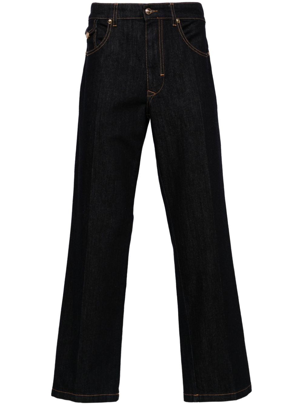 mid-rise tapered jeans Highlights - Indigo blue - Cotton blend - Denim - Pressed crease - Gold-tone logo plaque - Logo patch to the rear - Mid-rise - Belt loops - Concealed fly and button fastening - Two side inset pockets - Two rear flap pockets Imported Composition Cotton 98%, Spandex/Elastane 2% SIZE & FIT Model measurements Height 6 ft 2 in(1.87 m) Bust/Chest 36.41 in(92.5 cm) Hips 37 in(94 cm) Waist 29.52 in(75 cm) FittingInformation Designed with a straight leg, these jeans allow for an unrestricted and comfortable fit over the leg Constructed from stretch denim, this piece offers a stretch fit with durability This piece fits true to size – take your usual size